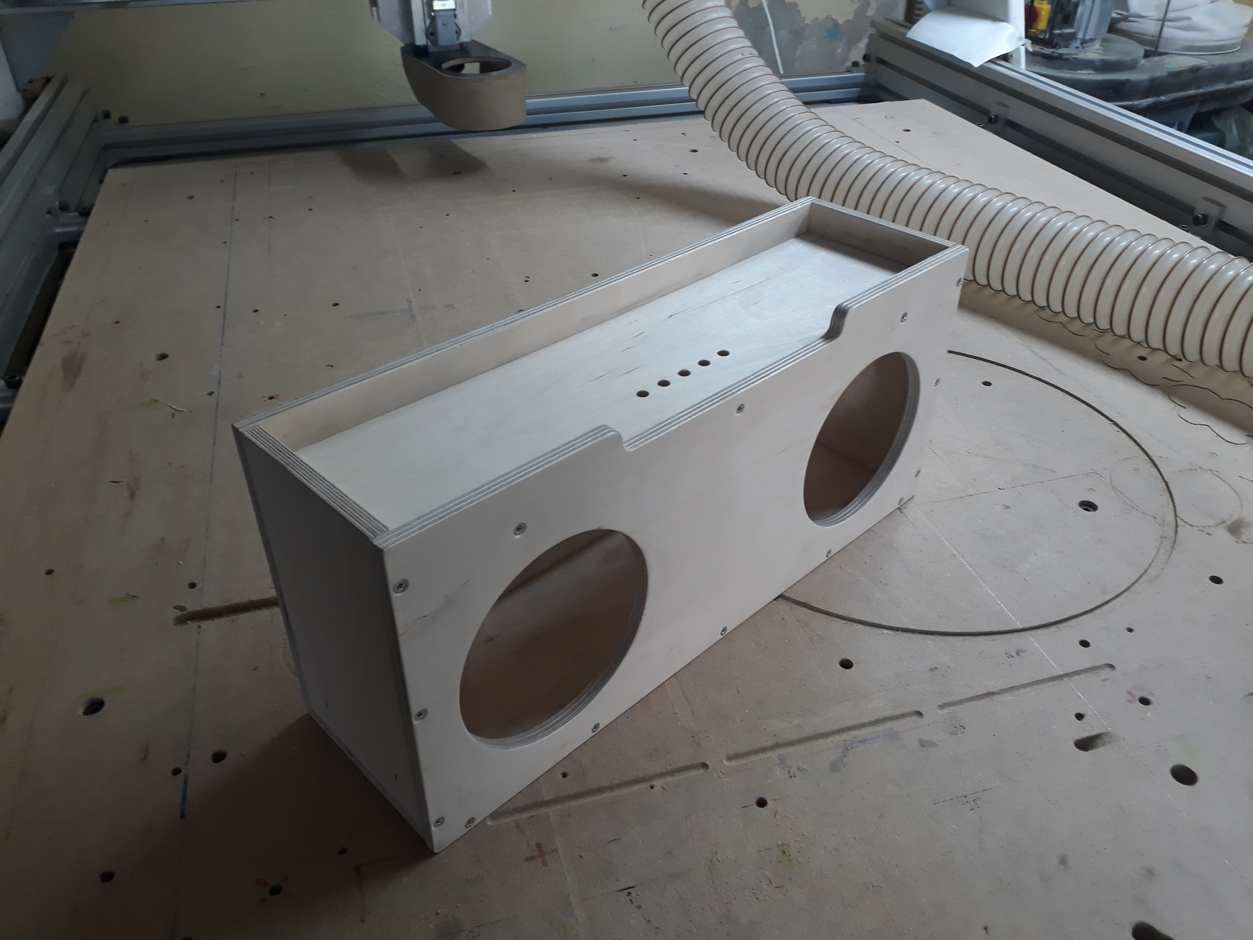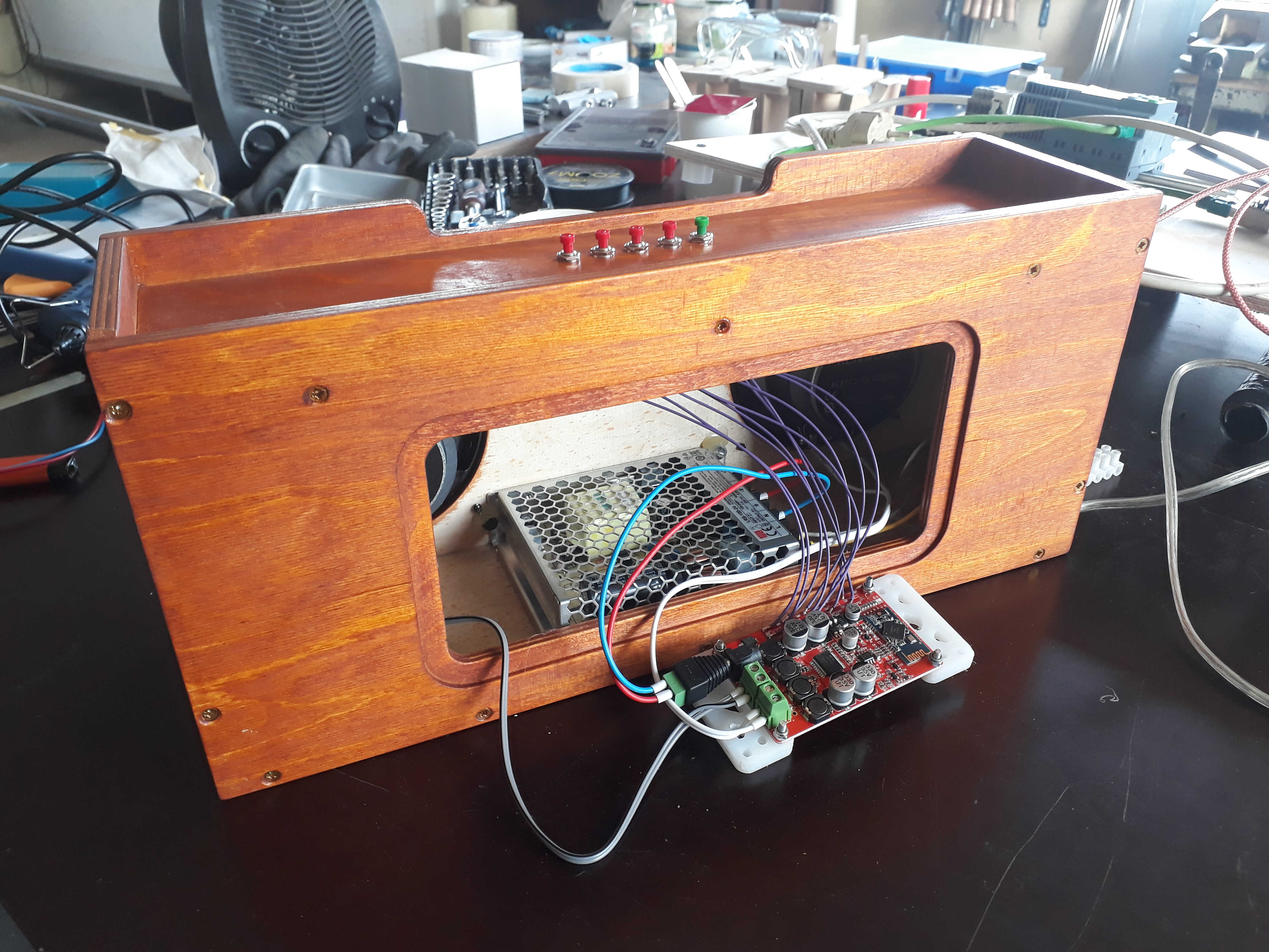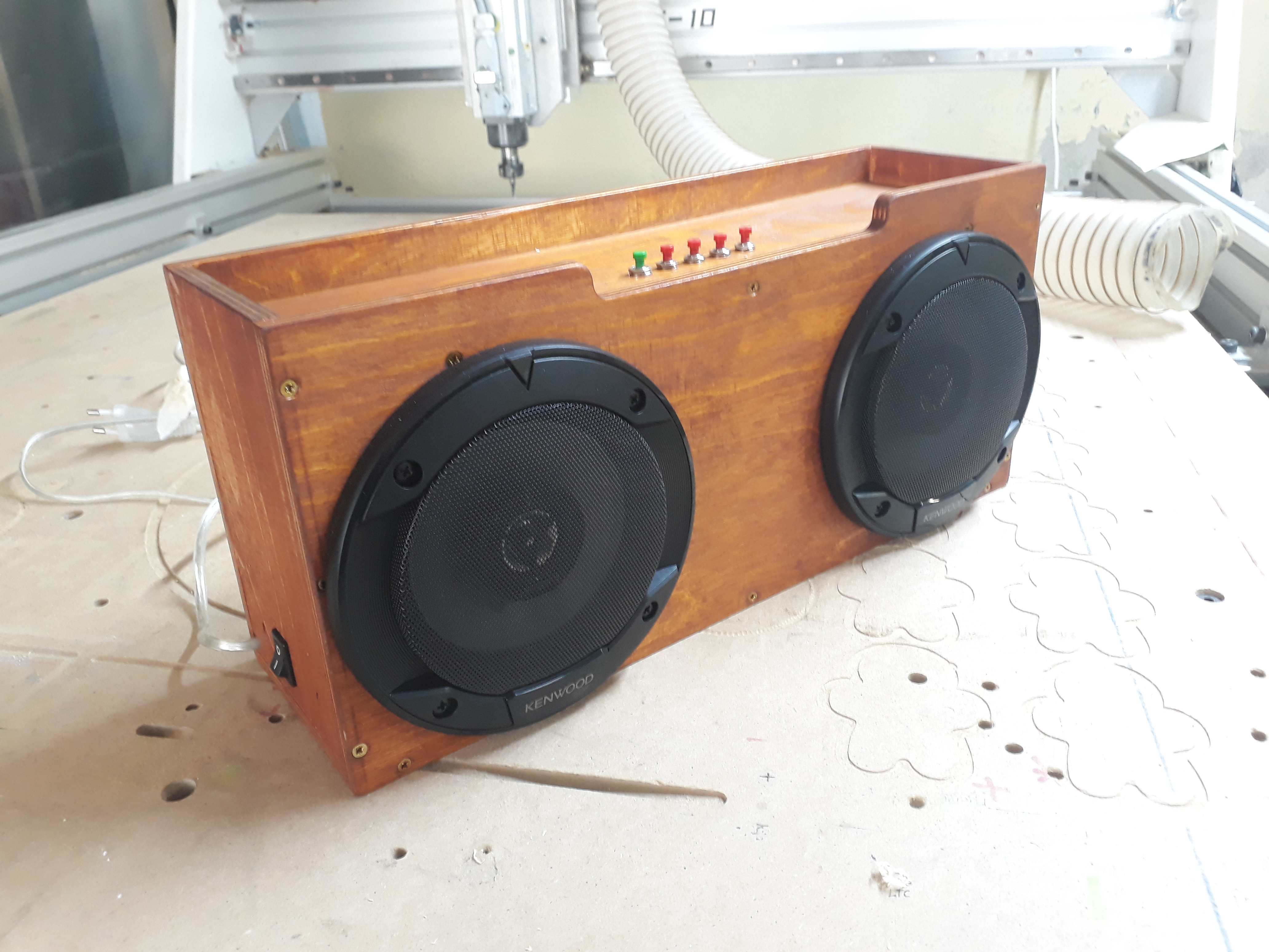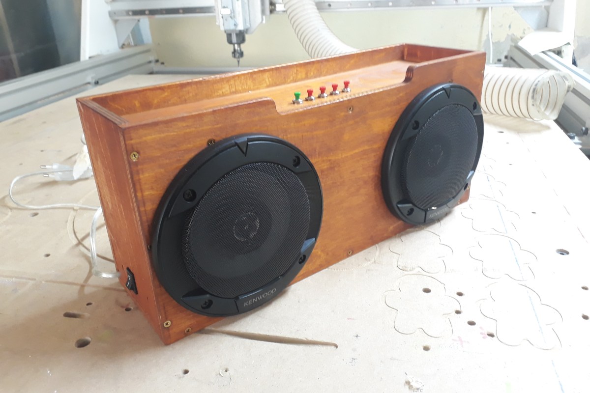 This was a quick project making a Bluetooth audio box for the workshop, because old radio device was drifting away from station all the time. It took me some time to ripe for this as it is time consuming and costs extra money to get speakers, power unit and some buttons. The audio Bluetooth module has been laying around for some time already on the table waiting for the right moment.