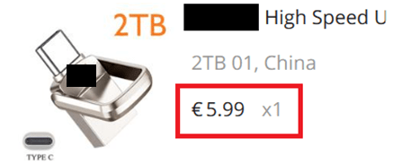Out of the curiosity, I purchased a 2TB USB flash drive for an unbelievable price of 5.99 EUR. However, from the moment of purchase I couldn’t shake the suspicion that this deal was too good to be true. My aim upon receiving this flash-drive was to check if actual memory capacity was matching one that was advertised.