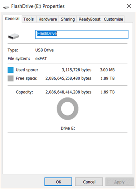 At the first glance we can see that the flash-drive has a memory capacity around 2 TB, this is because flash-drive is programmed to report this amount and it does not mean it is actually there. Let’s test it!